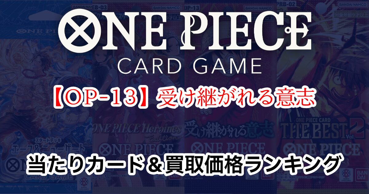 最新弾「受け継がれる意志(OP-13)」の高額カード・買取価格ランキングをまとめました。発売直後から人気…